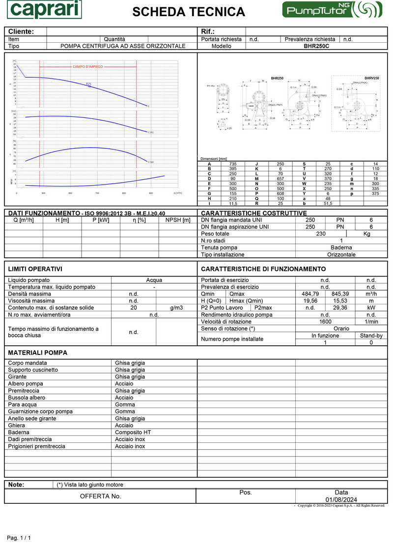 Pompe monostadio ad asse orizzontale. Serie BHR Caprari