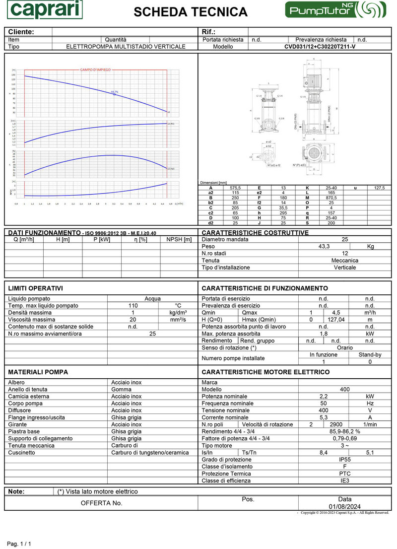Elettropompe multistadio verticali. Serie CVD Caprari
