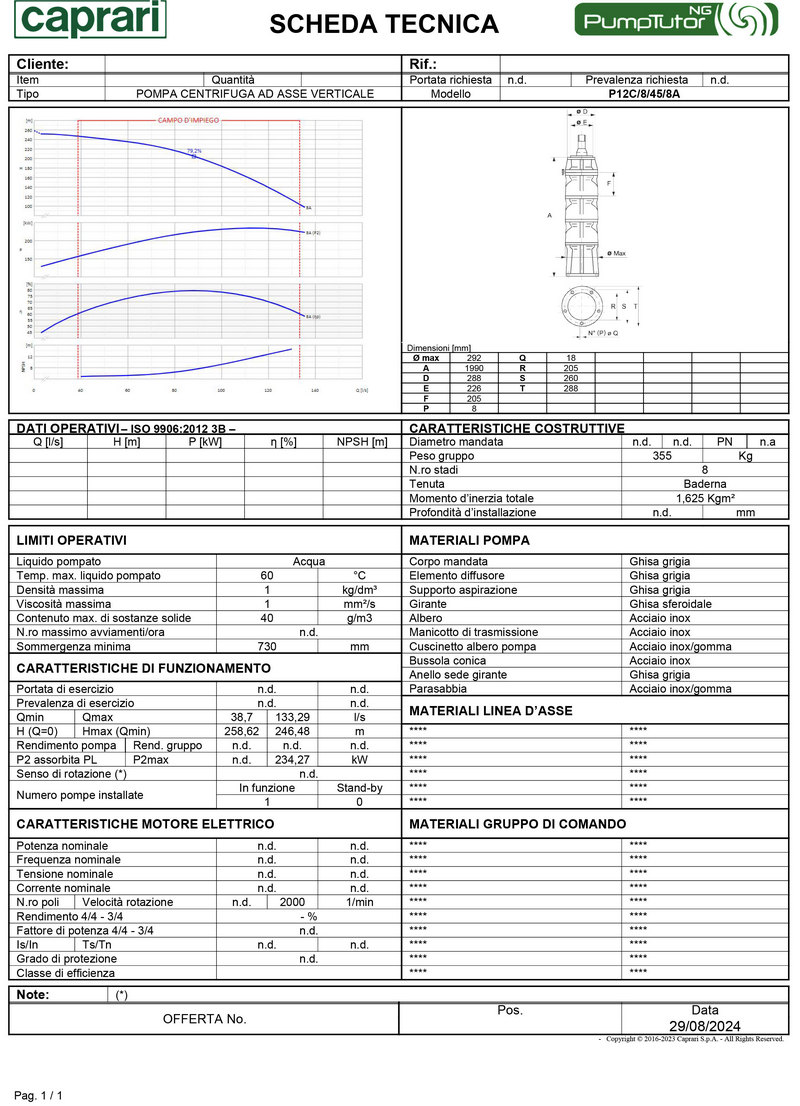 La gamma di pompe ad asse verticale 6″ ÷ 22″. La configurazione con corpo pompa immerso, linea d’asse e gruppo di comando in superficie costituisce una soluzione estremamente affidabile e con elevati rendimenti.Le pompe della serie P sono disponibili in diverse metallurgie e possono essere comandate sia da motori elettrici che da motori endotermici, garantendo un ampia flessibilità d’impiego per l’utilizzo in pozzi e vasche.Ideali per irrigazione, acquedottistica, industria e impianti antincendio.